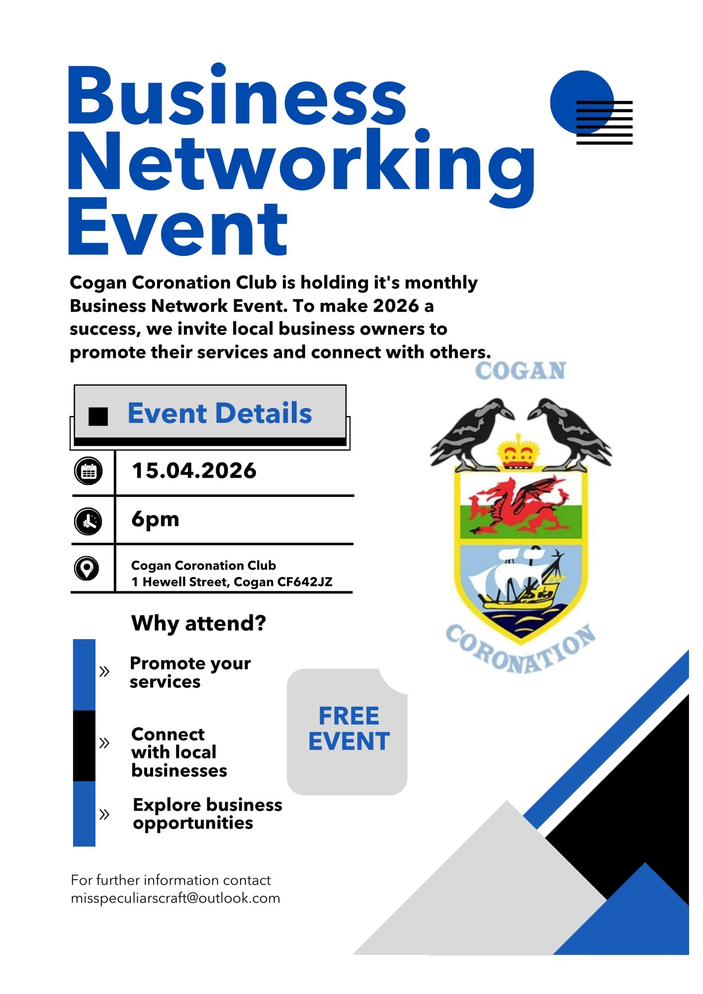 Join Cogan Coronation Club for their business networking event. A great opportunity to meet and learn from the local business community.
